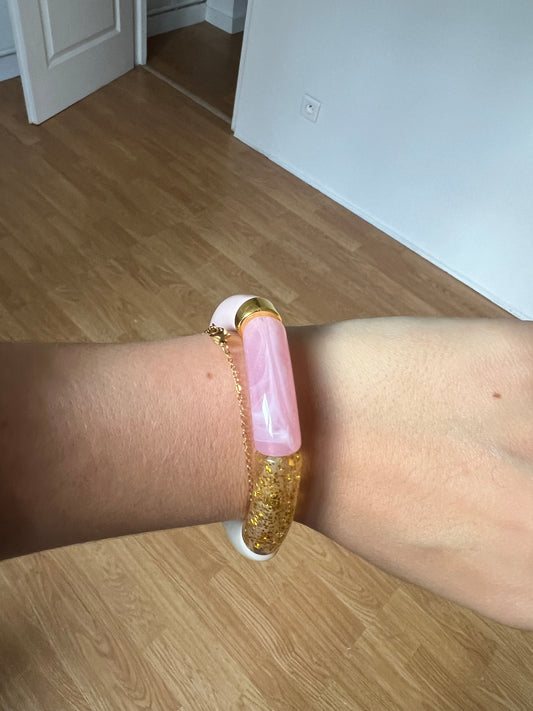 MIMI - Bracelet rose & doré à paillettes