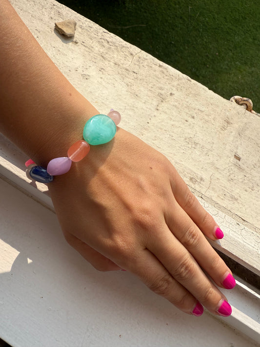 Playa- Bracelet perles acryliques jaune et étoile corail